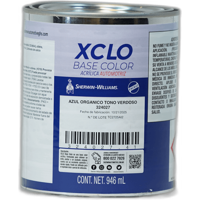 XCLO Base Color es una base color acrílica, formulada para obtener un brillo similar a un acabado original, con excelente cubriente y secado rápido; puede usarse para el repintado total o parcial de vehículos.