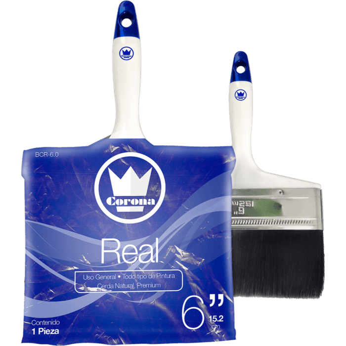 Brocha Real de cerda 100% natural, robusta y de corte preciso para una aplicación limpia y controlada en cualquier tipo de pintura.